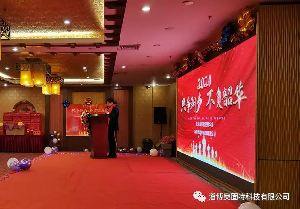 晚會開始首先由淄博奧固特科技有限公司執(zhí)行董事王總發(fā)表致辭,并宣布2020年度先進(jìn)表彰暨迎新年會正式開始,她代表公司感謝各位在過去一年為公司做出的貢獻(xiàn)和努力,并向全體員工致以親切的問候和新年的祝福。